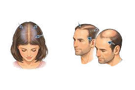Androgenetic Alopecia occurs when the hormone DHT builds up around hair follicles, reducing its nutrition & blood supply